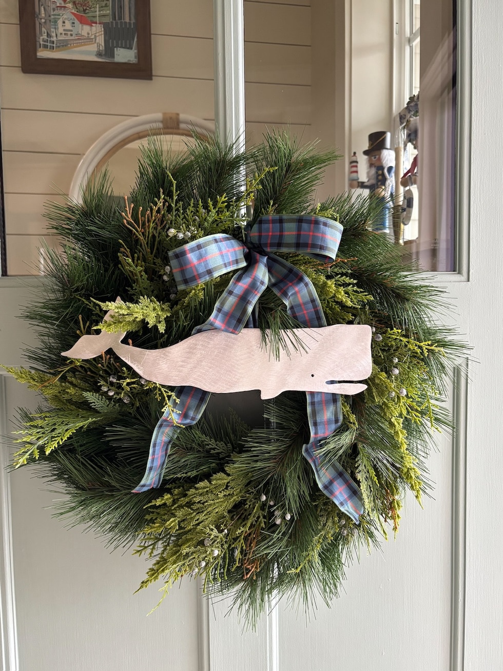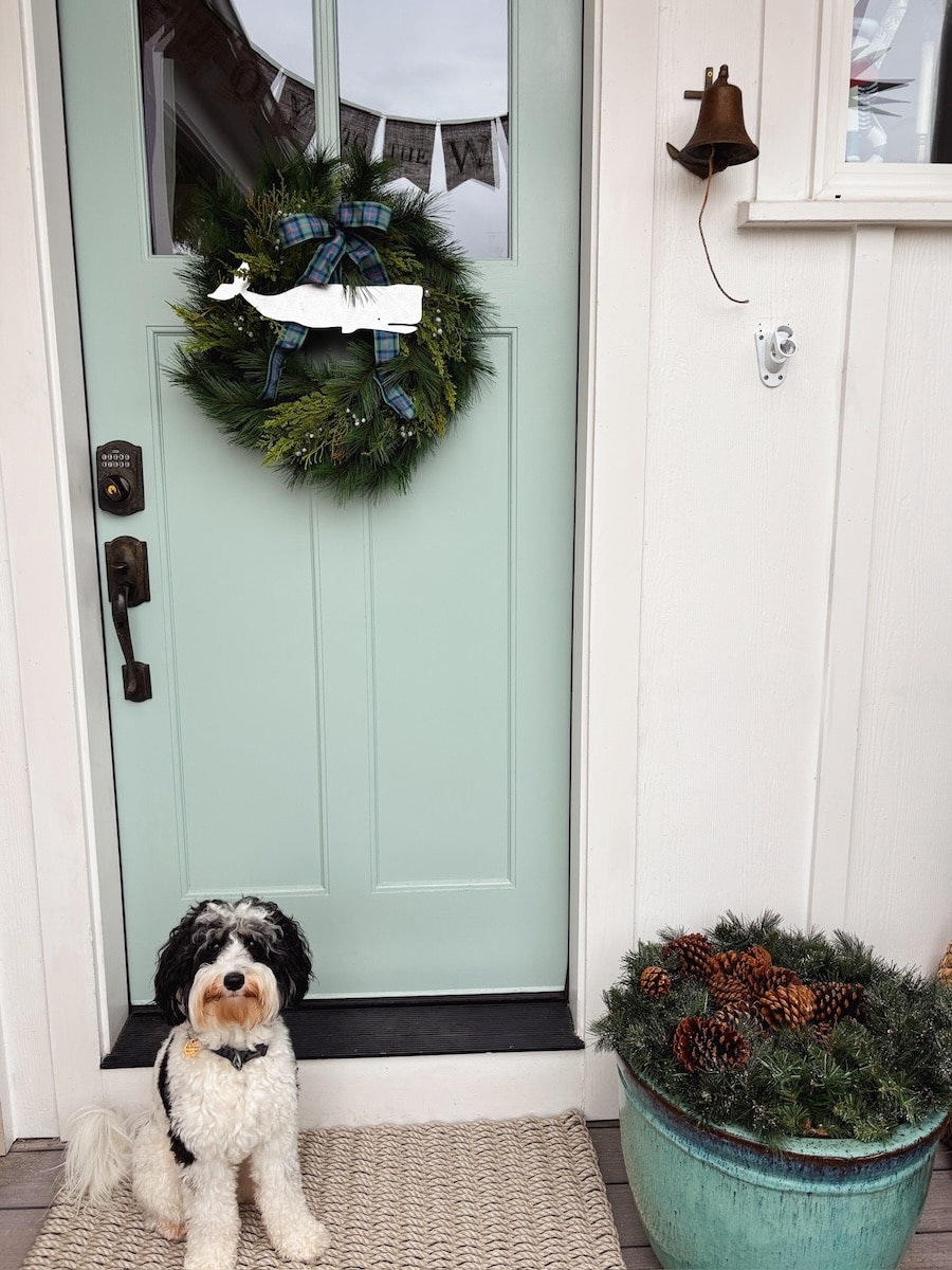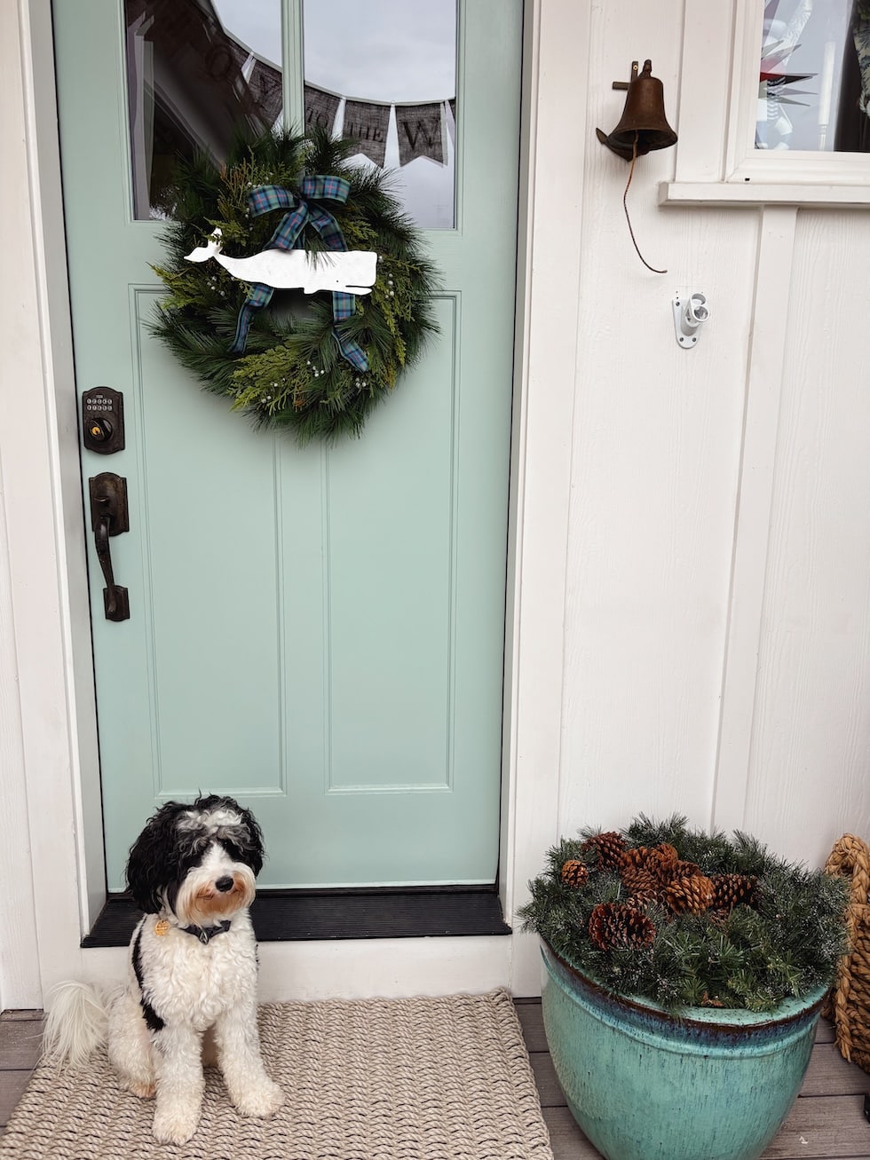 Last year, my cute metal whale that I add on our wreath went missing, so sadly he wasn’t on my door during the previous Christmas season. I missed him — so many people asked where he was and missed him, too!
