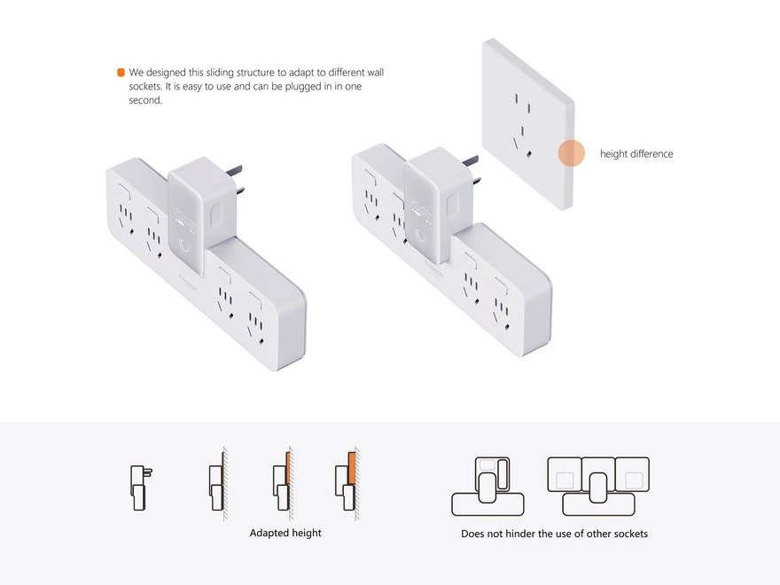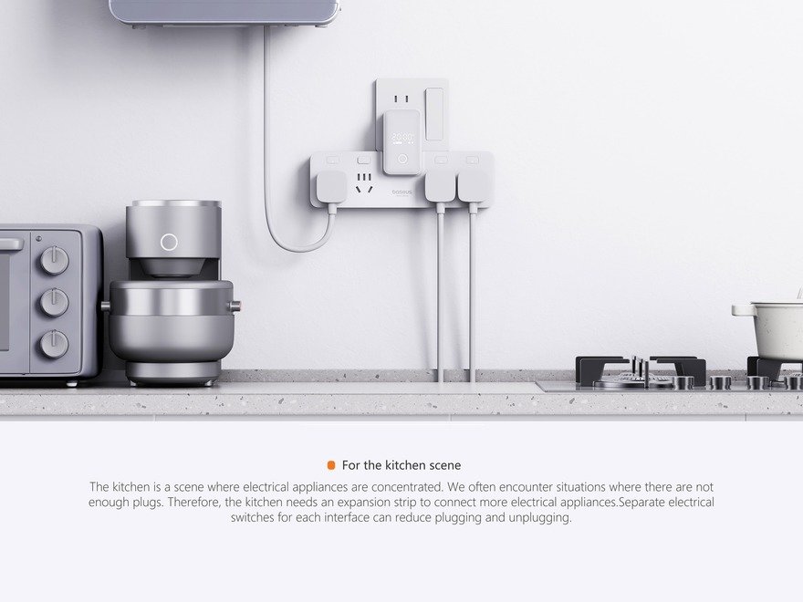 In China, many older homes antedate the relatively recent surge in the use of appliances and gadgets. As a result, kitchens may only have one outlet at the counter, with residents frequently having to unplug one object to plug in another. This PowerCombo Digital Power Strip, by Chinese manufacturer Baseus, was designed to compensate; picking one up is a lot easier than hiring an electrician to install more outlets.
